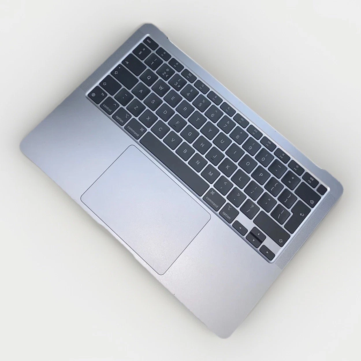 Replace or upgrade your MacBook Air 13″ A2337 (2020 M1) palmrest with this genuine Apple part. This listing includes the palmrest and UK keyboard in a sleek Space Grey finish. Ideal for repairs or part replacements.